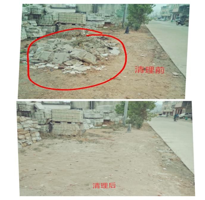 二是镇驻村领导带队,担任大清洁、大消杀总指挥。镇驻村领导带领驻村工作组、村干部、村小组长,拿着扫把、垃圾袋、钳子等清洁工具到村道、广场、沟渠、建筑物四周进行全面的卫生清洁活动。针对人居环境整治情况实时开展督查指导,进行现场录像和照相,形成整治前后照片对比图,发送至学习交流群中进行效果对比,一目了然,曝光警示效果明显。